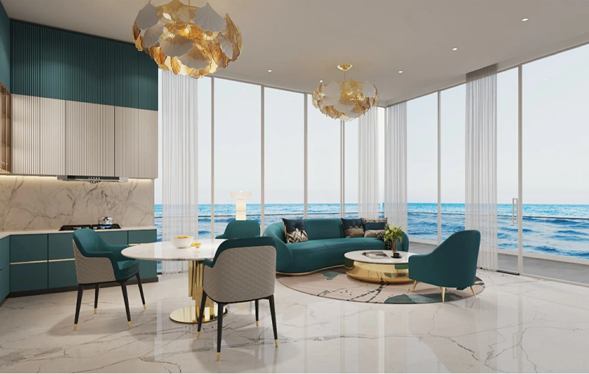 Interiors/Design Highlights: Italian finishes, open-plan layouts, and expansive balconies